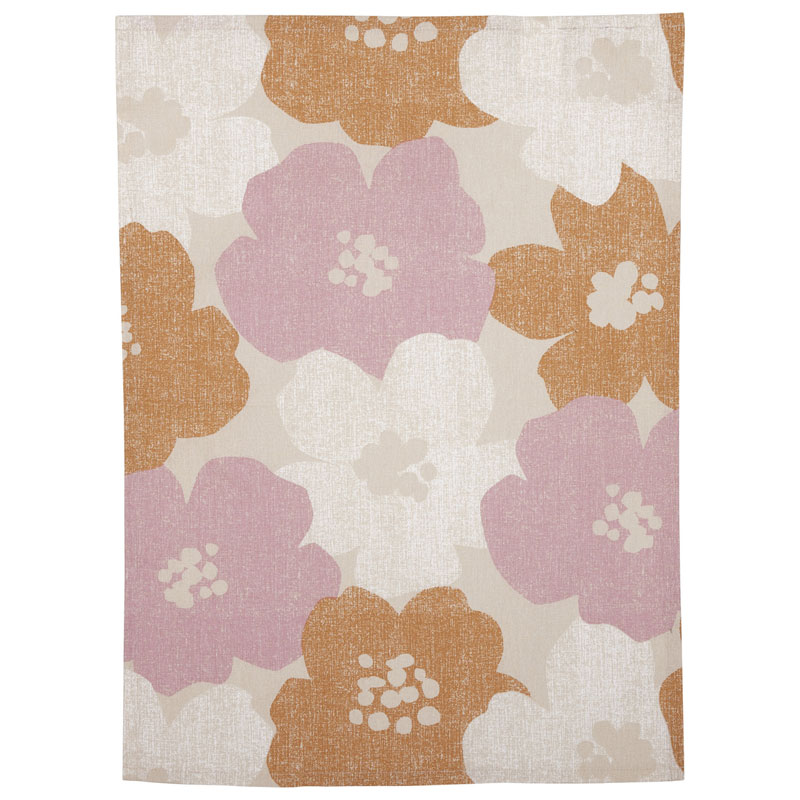 Lotta är en härlig kökshandduk från Fondaco, prydd av ett storblommigt mönster i olika rosa och orange nyanser.