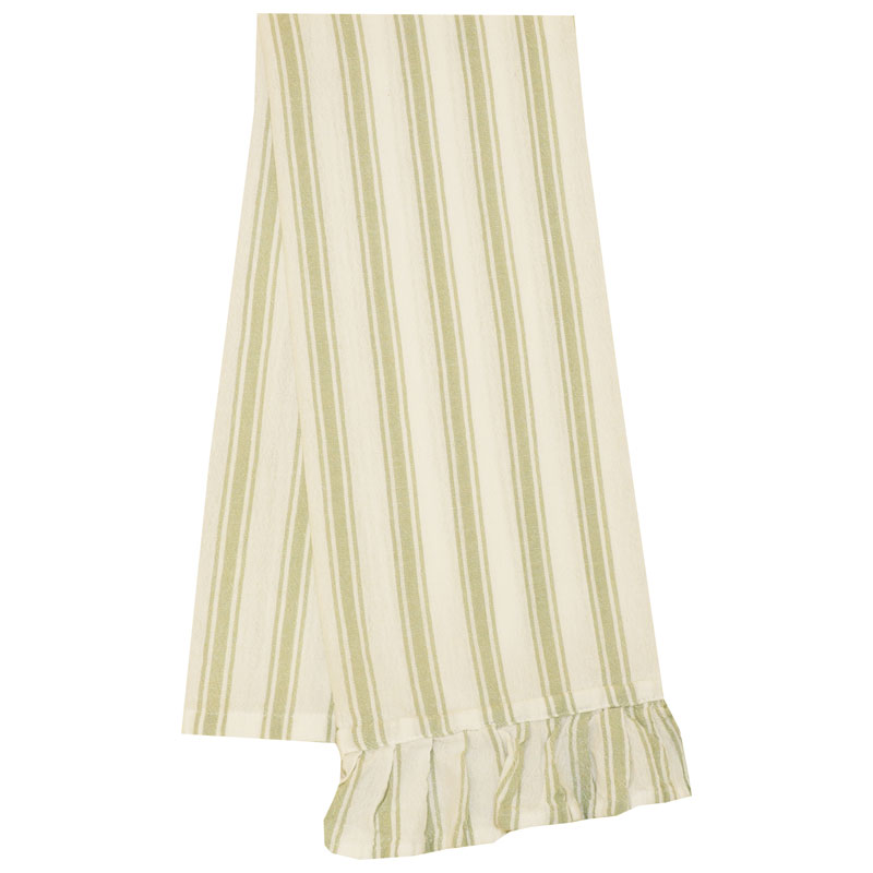 Madicken är en gullig kökshandduk i enzymtvättad bomull, med en söt volangkant.