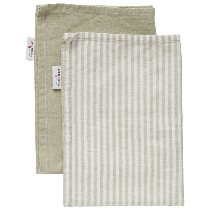 I detta set får du en enfärgad och en randig kökshandduk.
