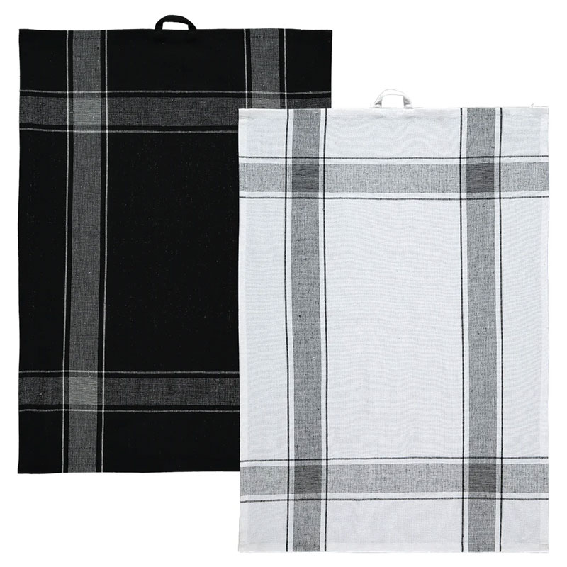 Ronja Kökshandduk Svart/Vit 2-Pack
