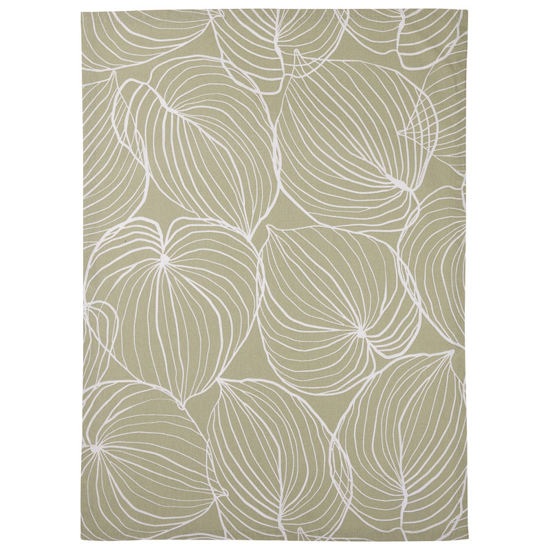 Tilda från Fondaco, ljusgrön kökshandduk med grafiskt mönster av stora, vita blad.