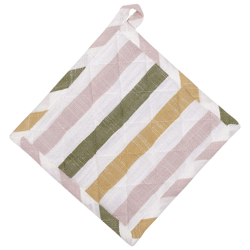 Alba är en läcker grytlapp från Fondaco, prydd av ett lekfullt randmönster i härligt våriga färger.