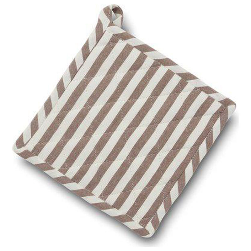 Tidlös grytlapp som pryds av smala, bruna ränder som för tankarna till bistrostil.