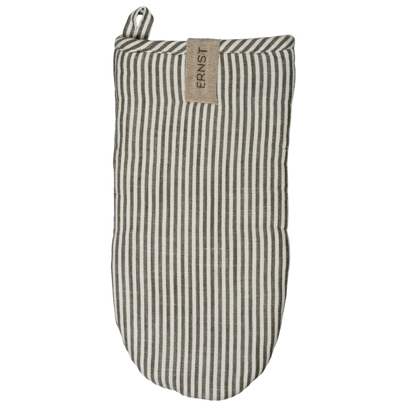 Tjusig grillvante från ERNST, tillverkad i 100% bomull. Prydd av ett smalrandigt mönster i salvia och vitt, ett inbjudande tillskott som förhöjer din vardag.