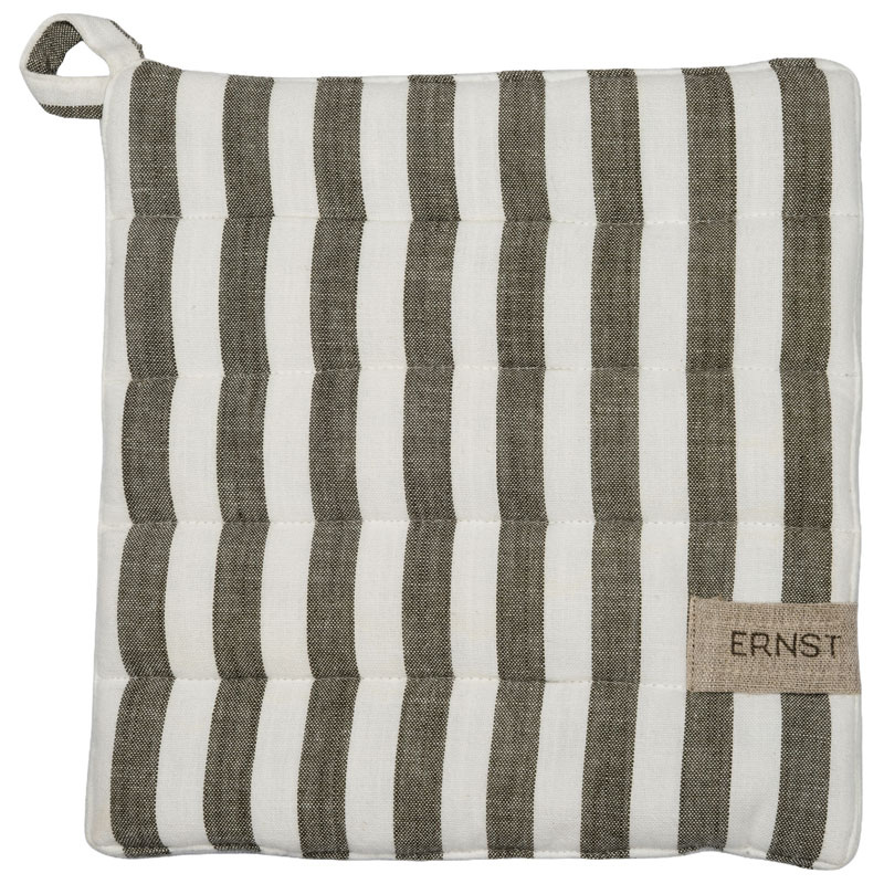 Iögonfallande grytlapp från ERNST, tillverkad i 100% bomull. Prydd av ett bredrandigt mönster i salvia och vitt, ett inbjudande tillskott som förhöjer din vardag.