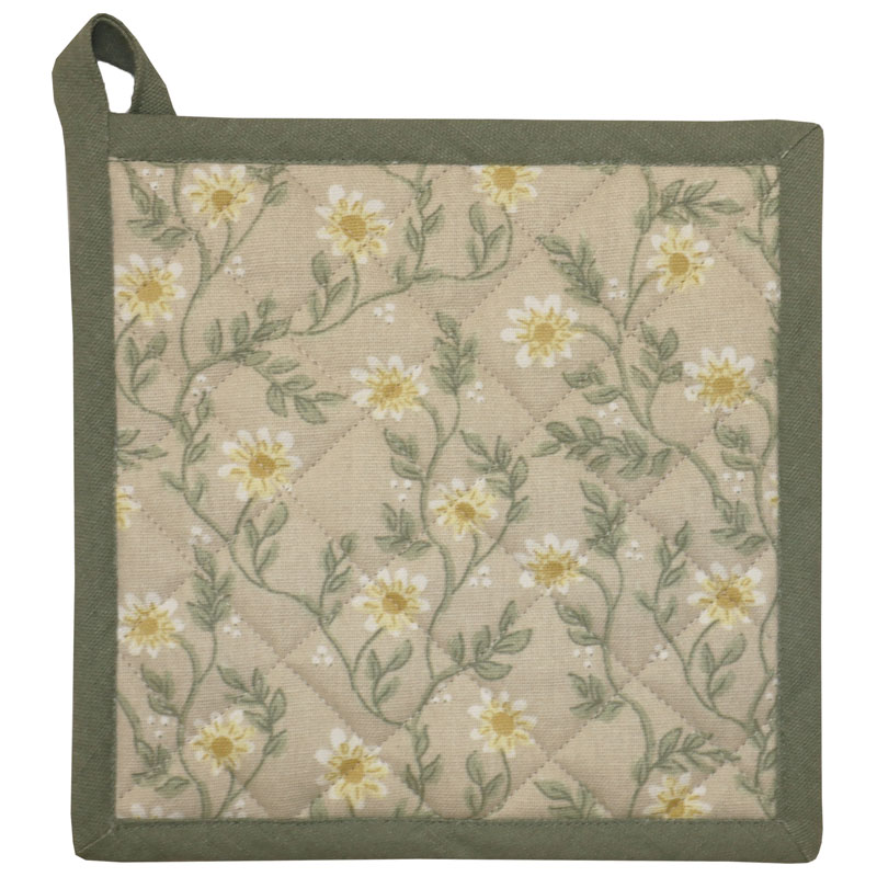 Gullig grytlapp från Redlunds, i ett vackert blommönster med en enfärgad beige botten.