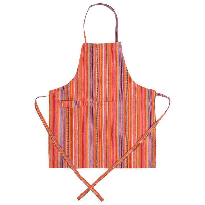 Låt de små hjälpa till i köket med ett praktiskt, randigt förkläde för barn från Recycled by Wille. Förklädet Goa har två fickor framtill och knytband i nacken och runt midjan.