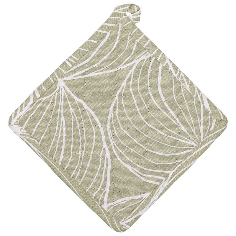 Tilda från Fondaco, ljusgrön grytlapp med ett grafiskt mönster av stora, vita blad.