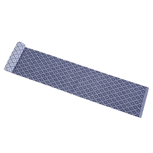 Ella från Recycled by Wille, fin ribbvävd löpare i marinblått med klassiskt rutmönster i vitt med en prick i mitten.