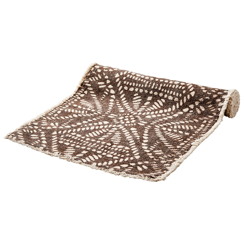 Fernando löpare från Affari of Sweden. En härlig Natur/Brun löpare i vävt bomullstyg med små fransar och mönster invävt i bohemisk stil.