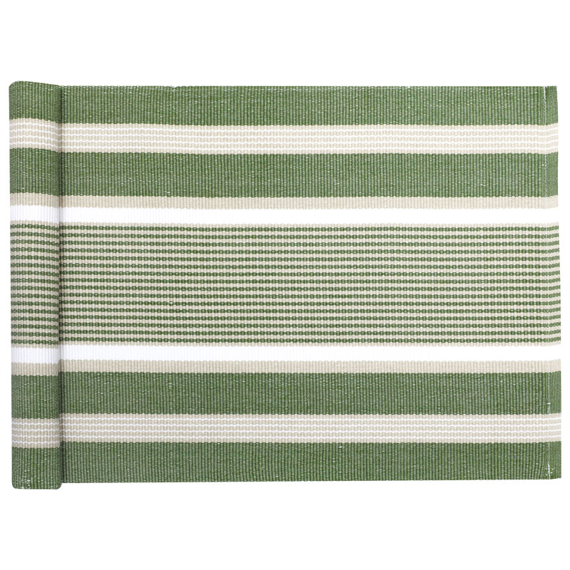 Ljuvlig löpare från Recycled By Wille, prydd av ett randigt mönster av grönt och linne.
