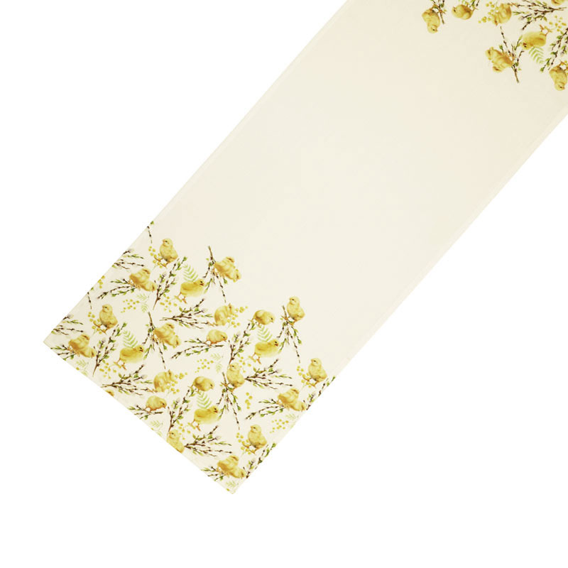 Gullvor är en charmig bordslöpare från Redlunds, med motiv av söta kycklingar.