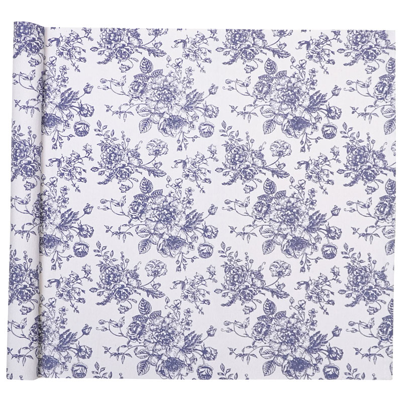 Juni är en vacker löpare från Classic Textiles, tillverkad i 99% återvunnet material. En stilig löpare med ett snyggt blommigt mönster i blått mot en vit botten.