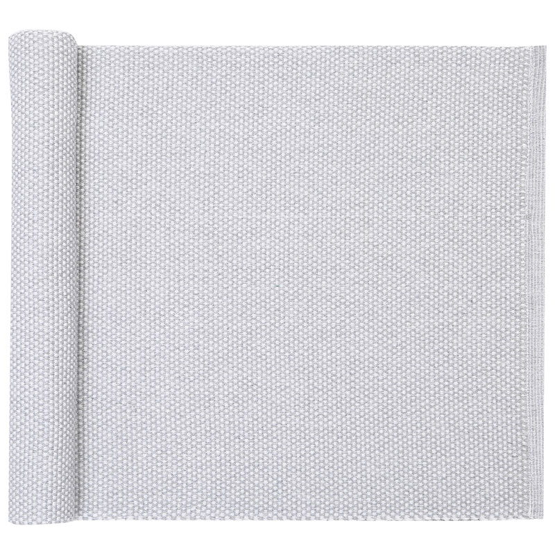 Chambray innebär att tyget är vävt av olikfärgade garner vilket ger det en något spräcklig färg och ett levande uttryck. Denna vackra löpare är vävd med grå och ljusgrå garner.