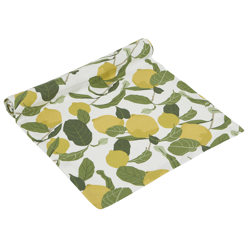 Underbar bomullslöpare från Fondaco, med ett vårigt tryckt citronmönster.