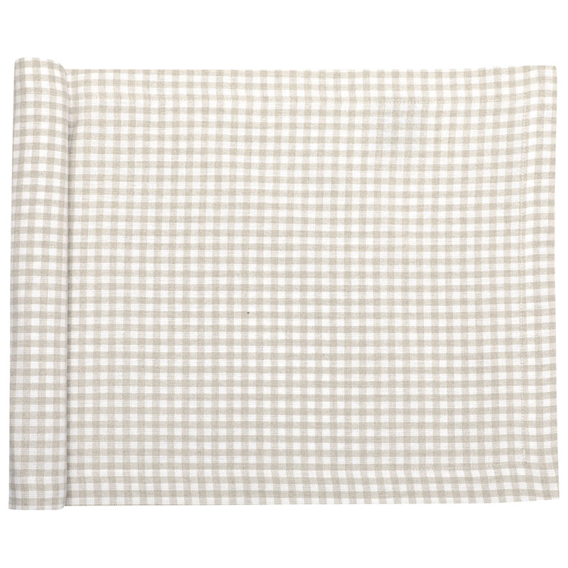 Stilren, rutig tyglöpare från Recycled by Wille, som gör både frukost, lunch och middag till en mysig stund vid köksbordet. Designen är enkel och gör att löparen passar för alla tillfällen.