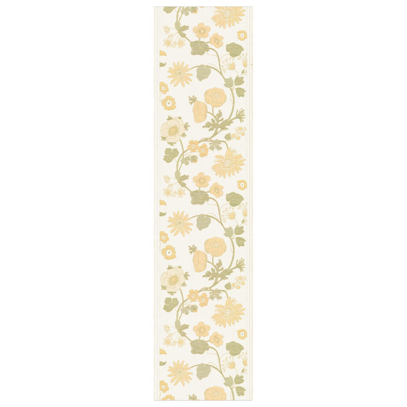 Solbacka är en inbjudande bordslöpare från Ekelund, med motiv av gula blommor mot en ljus blommor.