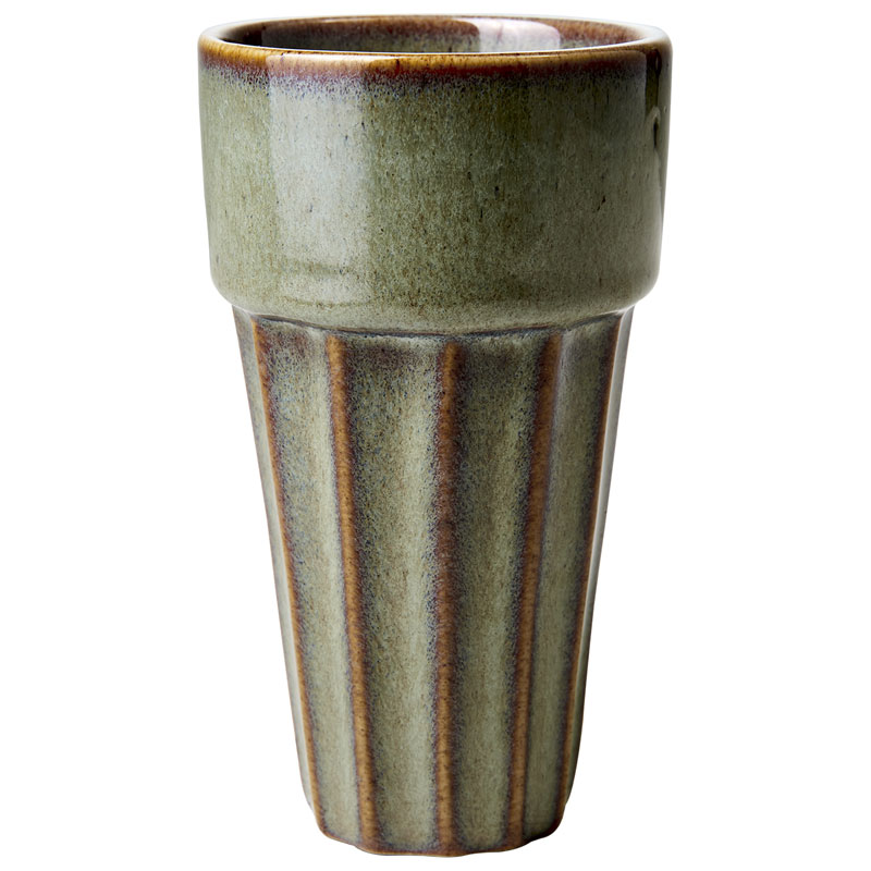 Den rustika designen och glasyren i varma nyanser gör koppen perfekt för kaffe, te eller varm choklad.