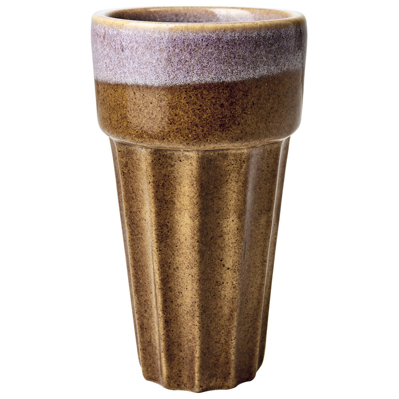 Den rustika designen och glasyren i varma nyanser gör koppen perfekt för kaffe, te eller varm choklad.