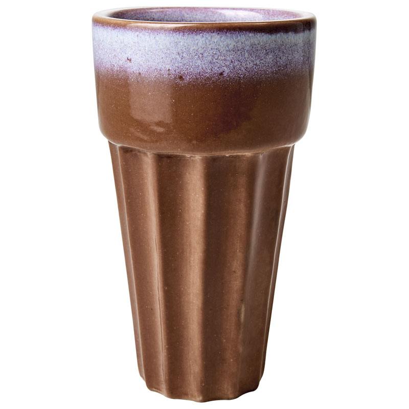 Den rustika designen och glasyren i varma nyanser gör koppen perfekt för kaffe, te eller varm choklad.