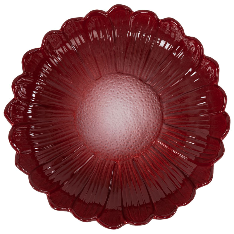 Dagny från Sagaform, vacker tallrik med design inspirerat av tusenskönans blad. Den fina glaseringen går i vinrött och avslutas med vitt på tallrikens mitt.