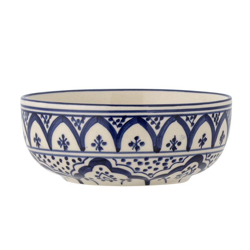 Ljuvlig skål i blått med mönster inspirerat av medelhavets soliga kust.