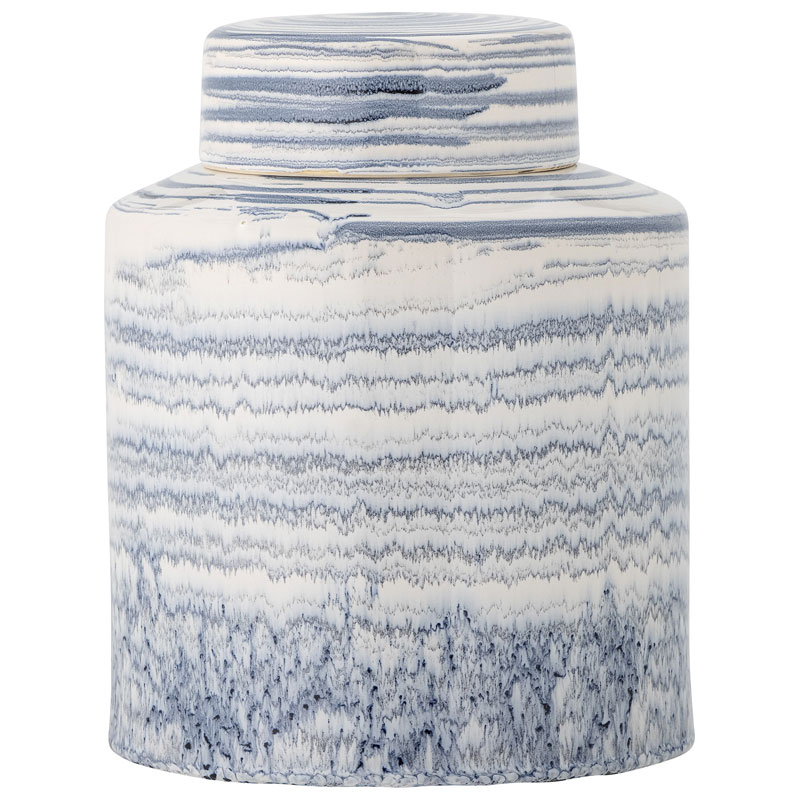 Mahina Burk m/Lock från Creative Collection är gjord av stengods och handmålad i vita och blå nyanser. Placera den på en bokhylla eller soffbord för dekoration och förvaring.
