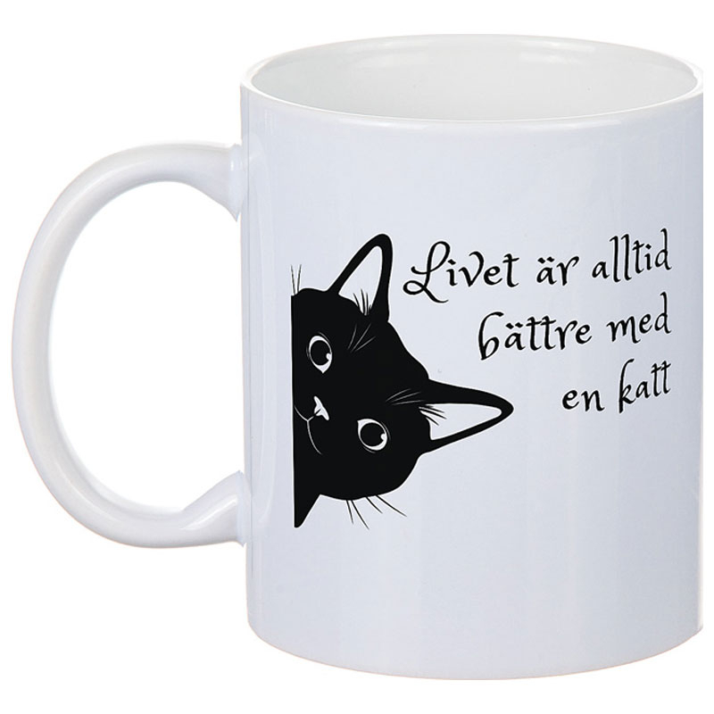 Lekfull mugg från Different Design. Med härlig text om katter. En rolig present till kattälskaren eller att ha hemma själv.