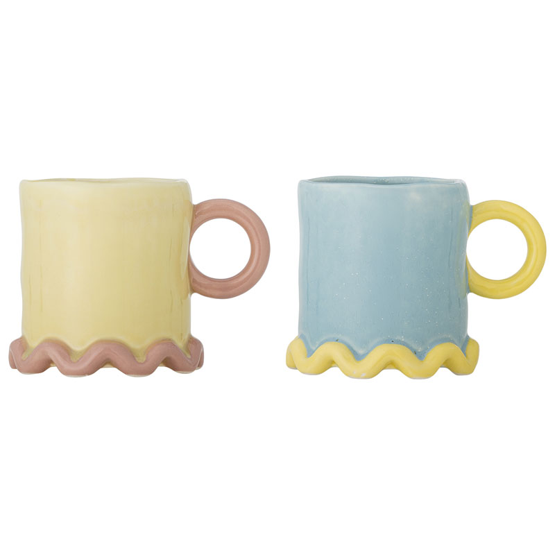 Polly är ett vackert två pack stengodsmuggar från Bloomingville, med blank glasyr och volangformad botten.
