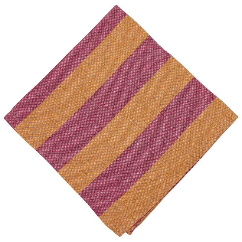 Prydd av ett klassiskt randmönster i orange och rosa, som passar perfekt för fest och vardag.