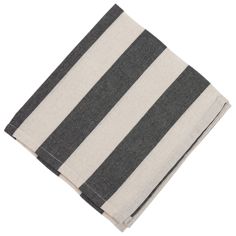 Prydd av ett klassiskt randmönster i svart och lin, som passar perfekt för fest och vardag.