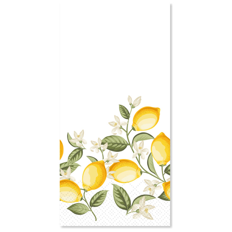 Snygg lunchservett från Chic Antique, med en grön botten prydd av ett charmigt citronmönster i gult och grönt.