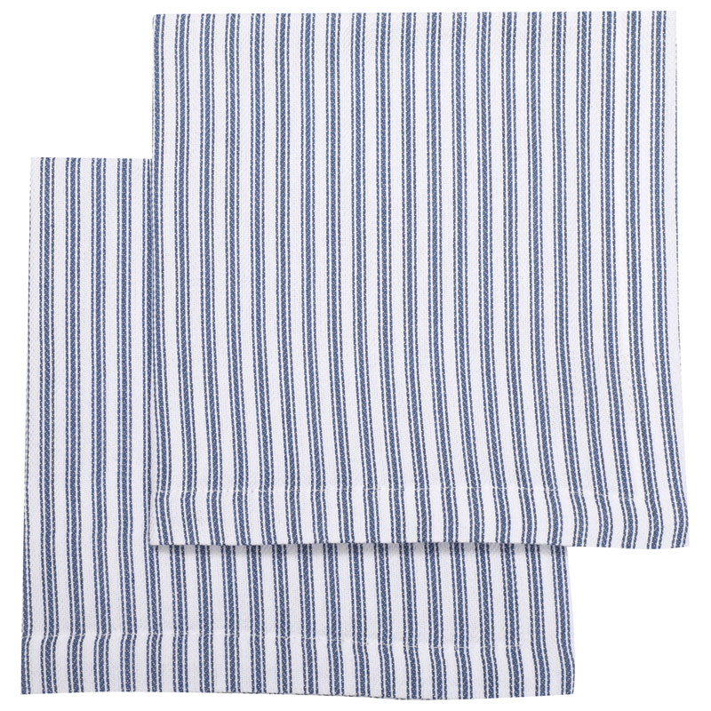 Lina är en klassisk tygservett från Recycled By Wille, prydd av ett randigt mönster i gråblå/vitt.