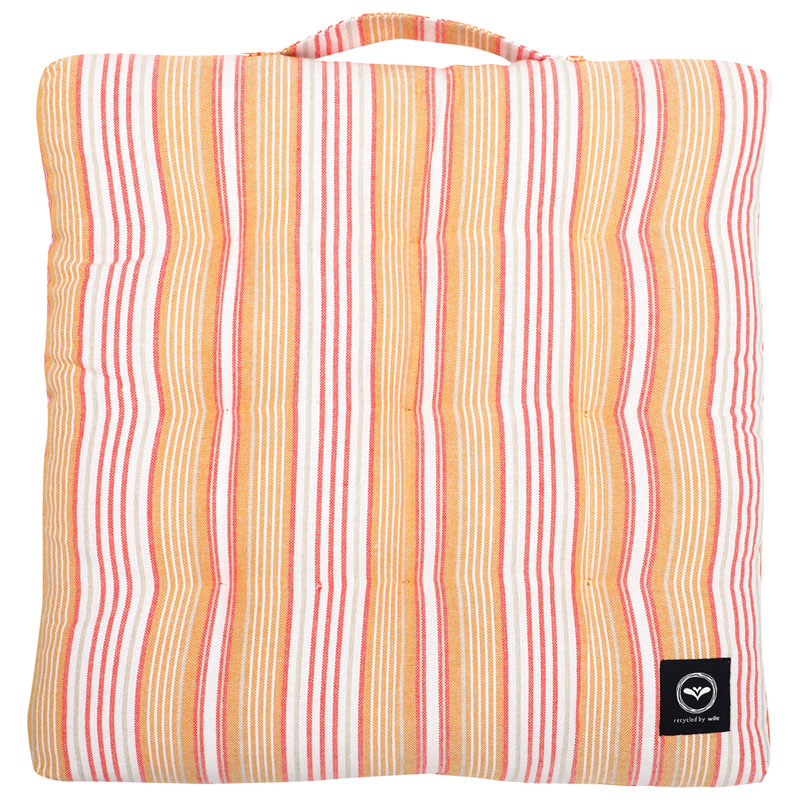 Eden palldyna från Recycled by Wille. Snygg palldyna i ett randigt mönster med härligt gula/orange nyanser.