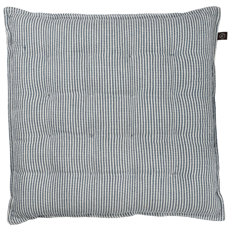 Vacker stolsdyna från Ernst, med ett klassisk smalrandigt mönster i blått och vitt.