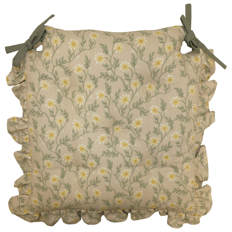 Gullig stolsdyna med volang runt om, från Redlunds. Med ett vackert mönster skapat av svensk designer.