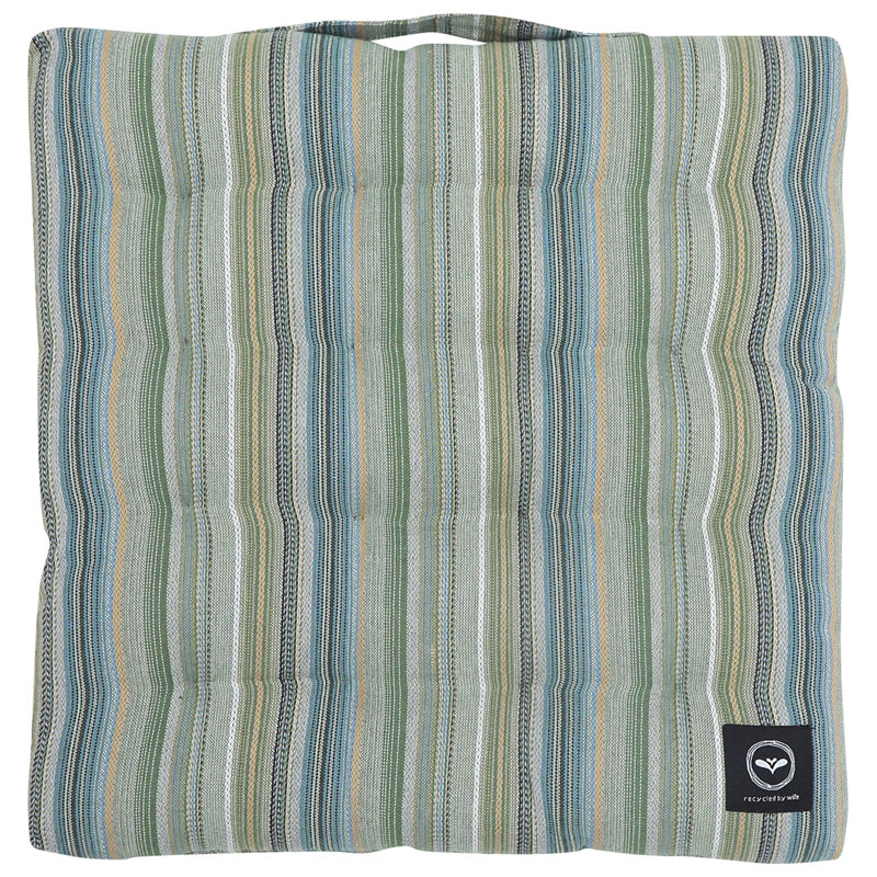 Goa palldyna från Recycled by Wille. Snygg palldyna i ett randigt mönster med härliga färger. Dynan är fri från snören och tillverkad i återvunnet material.
