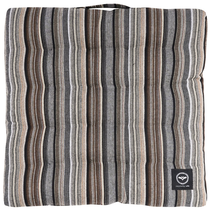 Goa palldyna från Recycled by Wille. Snygg palldyna i ett randigt mönster med härliga färger. Dynan är fri från snören och tillverkad i återvunnet material.