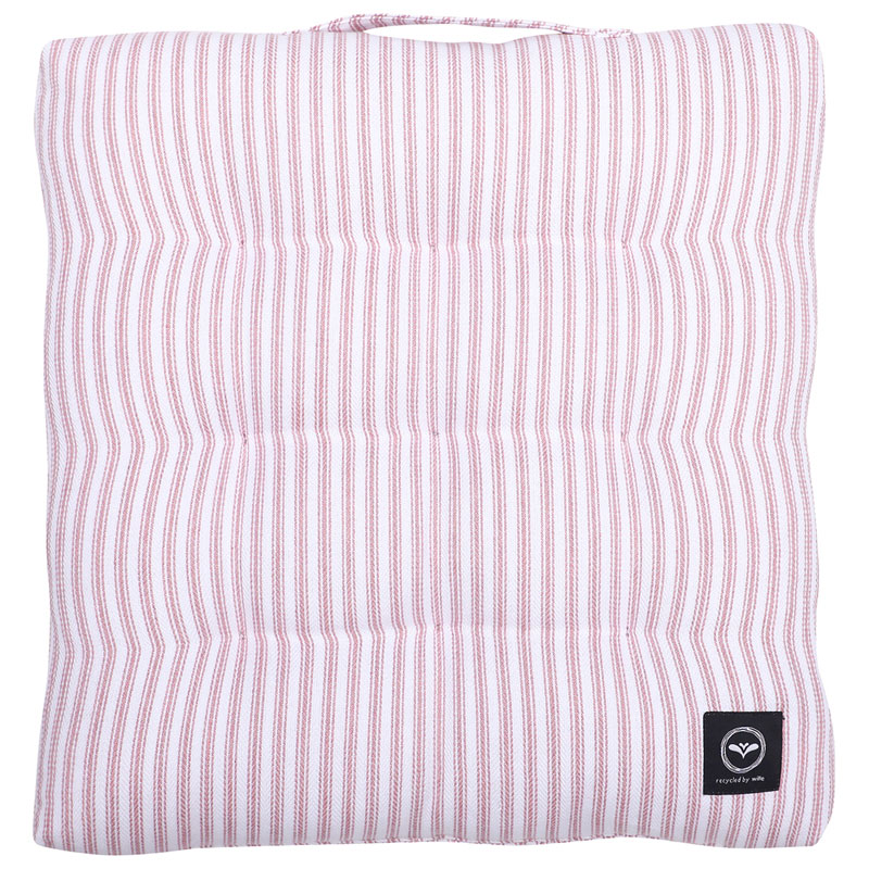 Lina är en mjuk palldyna från Recycled By Wille, med ett randigt mönster i ljusrosa och vitt.