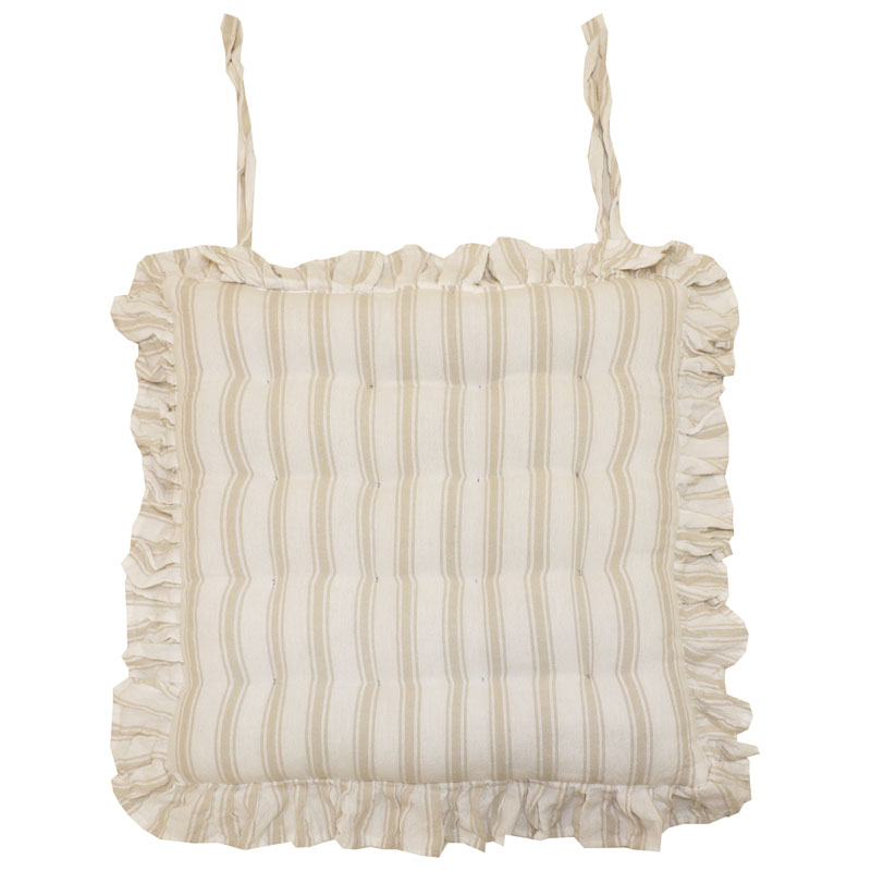 Madicken är en randig stolsdyna i linnenyans från Redlunds, kanten pryds av en smakfull volang som skapar en exklusiv touch.
