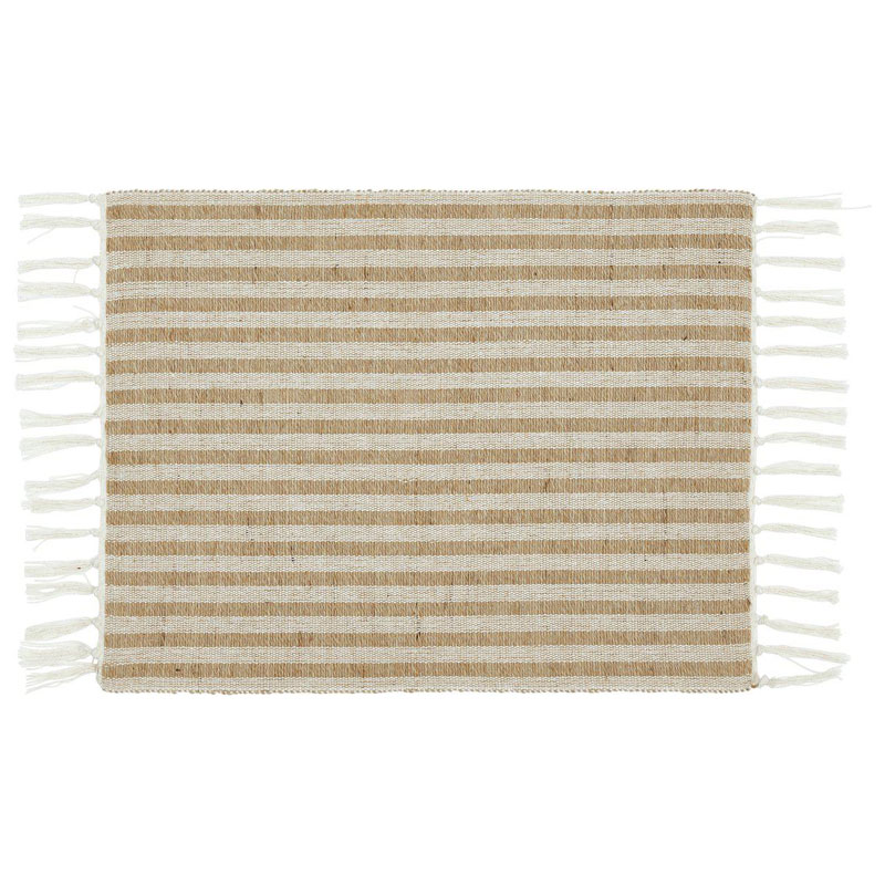 Randig bordstablett i bomull/jute frans. Snygg att ha på matbordet och även som inredningsdetalj på soffbordet.