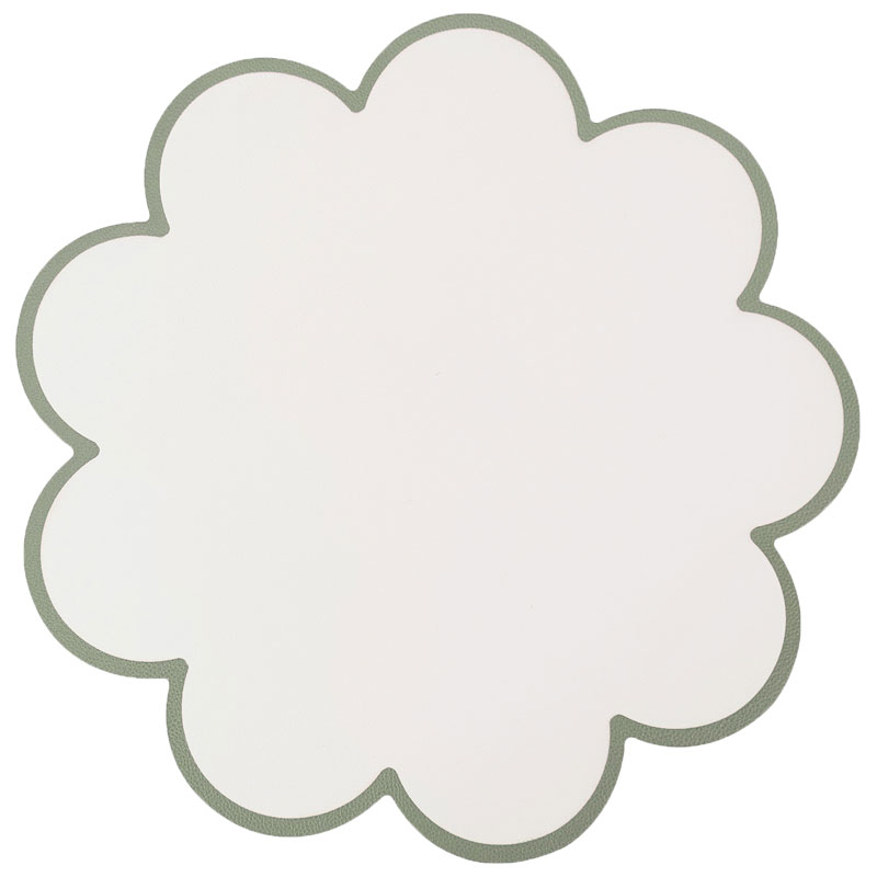 Söt rund bordstablett i läderimitation med enfärgad kant, från Redlunds. En elegant tablett som adderar en naturlig och fräsch känsla till dukningen.