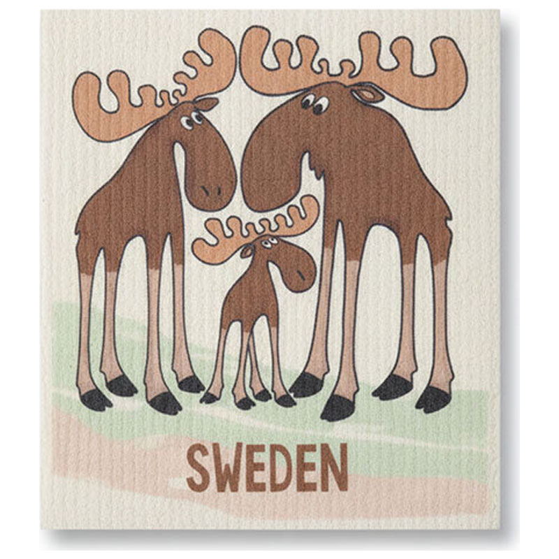 Gullig disktrasa från Nordic Souvenir, med tecknat motiv av tre älgar stående i grupp.