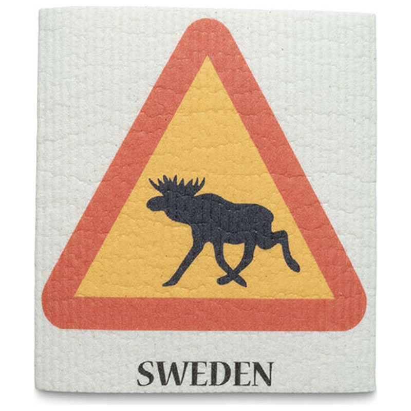 Unik disktrasa från Nordic Souvenir, med motiv av en älgvarningsskylt mot en vit botten.