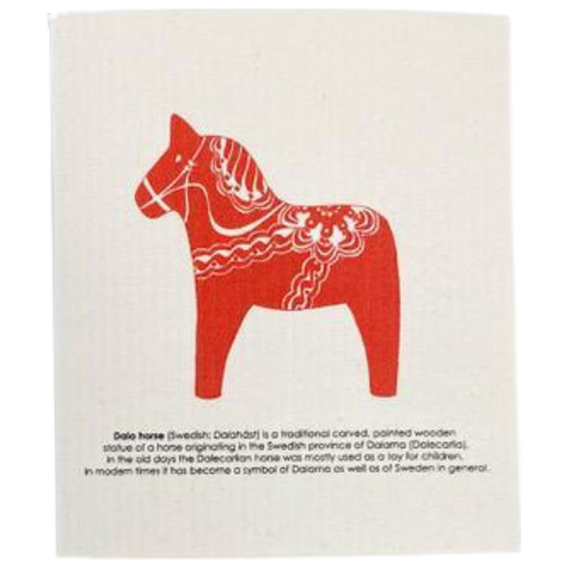 Härlig disktrasa med motiv av en klassiskt röd dalahäst, med definitionen av en dalahäst skrivet under motivet.