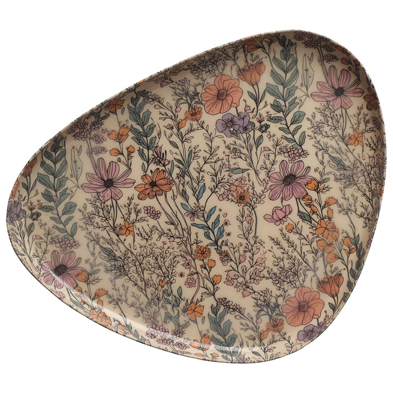 Eldorado är ett vackert fat från Affari Of Sweden, med ett tryckt flerfärgat blommönster mot en offwhite botten.