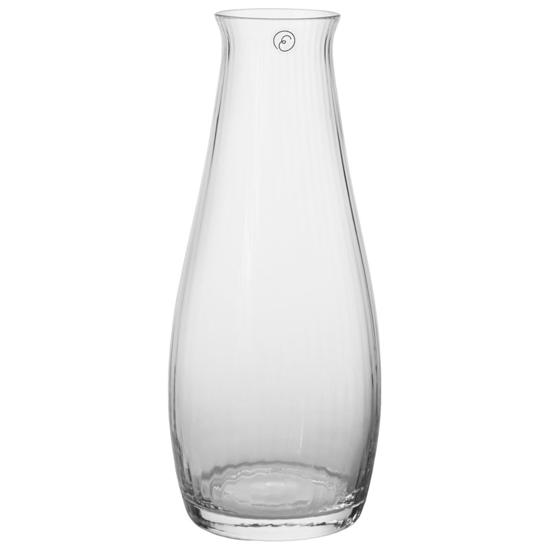 Vackert räfflad karaff i klarglas från ERNST, med en mjuk skulptural form och smal hals som skapar en modern look. Perfekt för servering av vatten eller annan dryck.