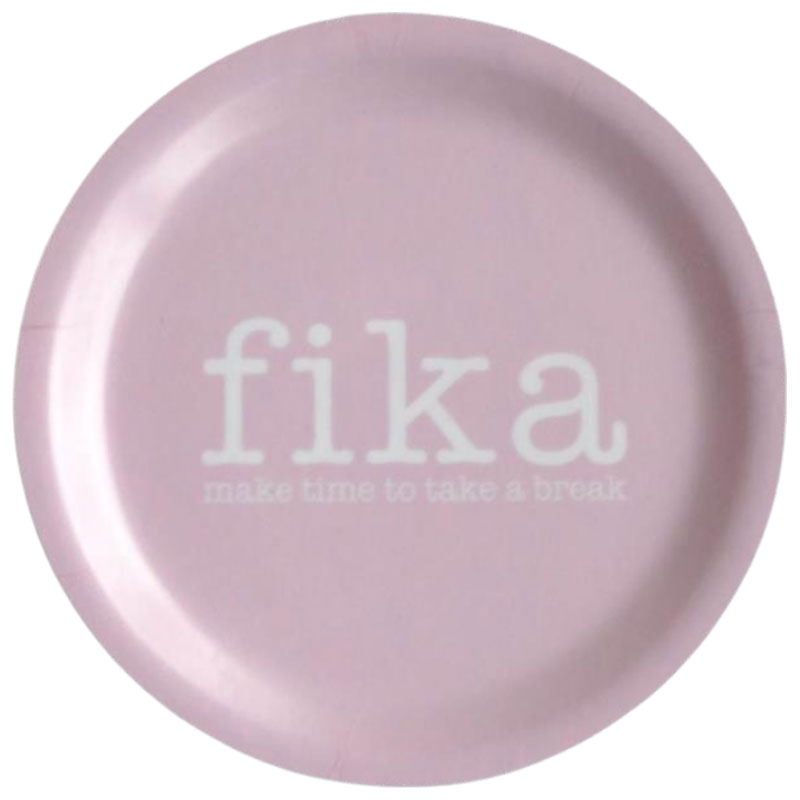Härligt glasunderlägg med kant, prydd av texten "Fika, make time to take a break" i vitt mot en rosa botten.