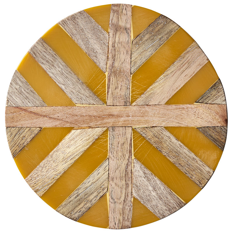 NICO glasunderlägg i natur och gult från Affari of Sweden är ett uttrycksfullt tillbehör som livar upp dukningen med sin varma färgton. Tillverkat i trä och resin, där den naturliga känslan i träet möter den lekfulla och soliga gula nyansen.