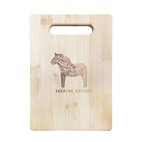 Skärbräda i trä från Nordic Souvenir. Tryck av en dalahäst på skärytan.